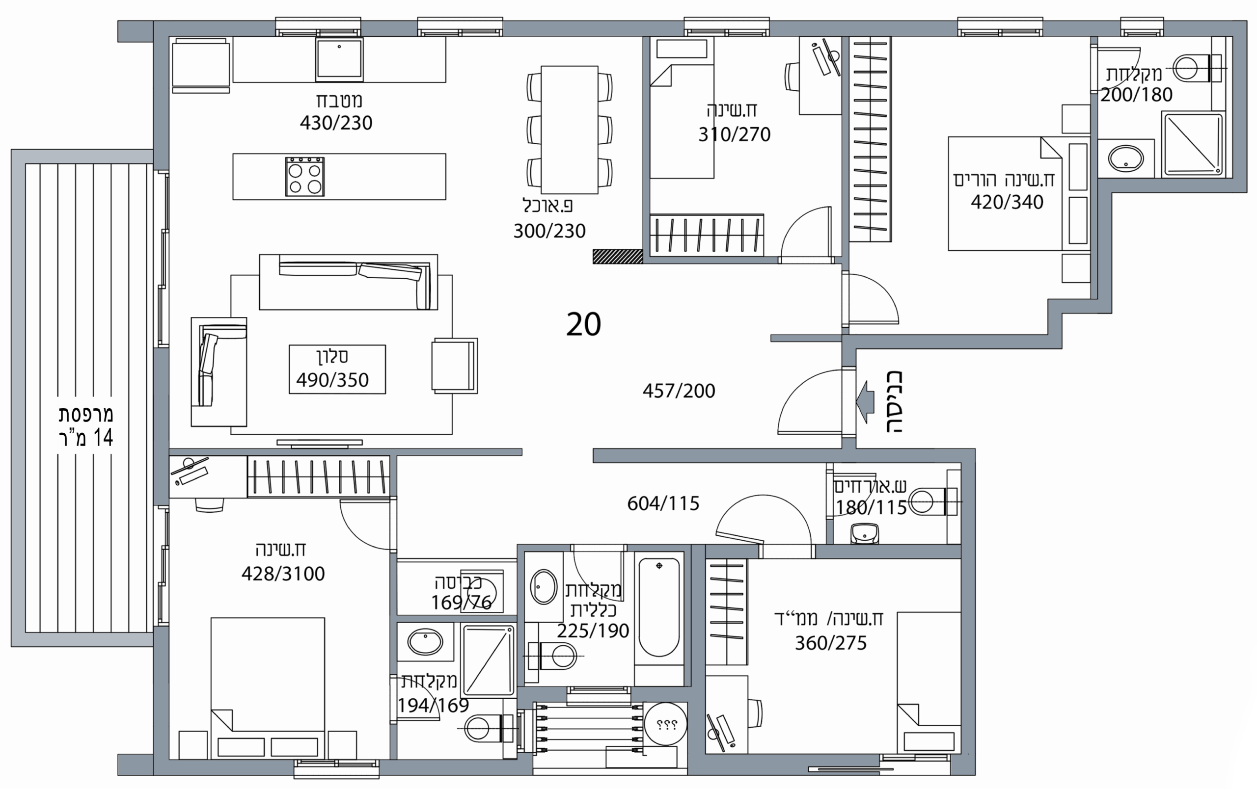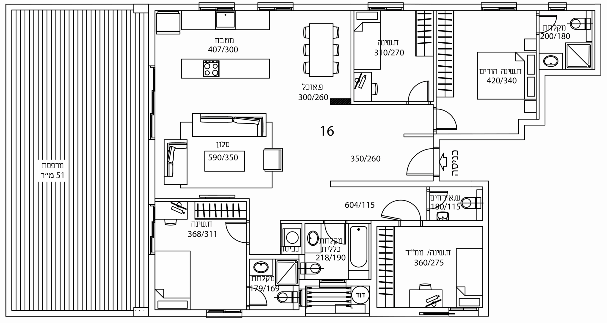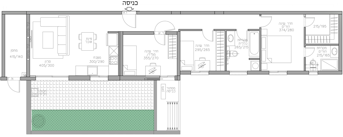 - מטבחים באורך כ- 12 מטרים – מחברת 'אביבי' או 'ברגל' לבחירה