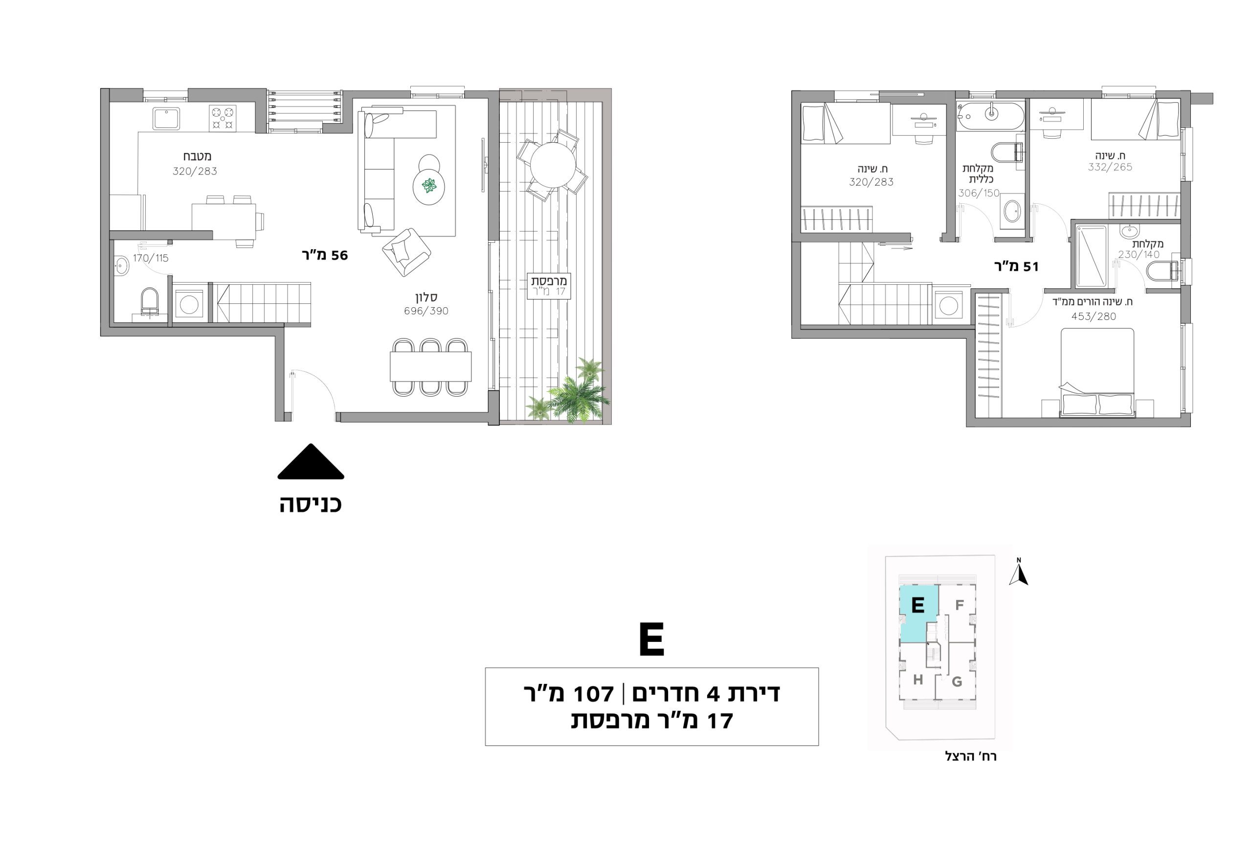 שטח הדירה‏ ‏96-107 מ"ר