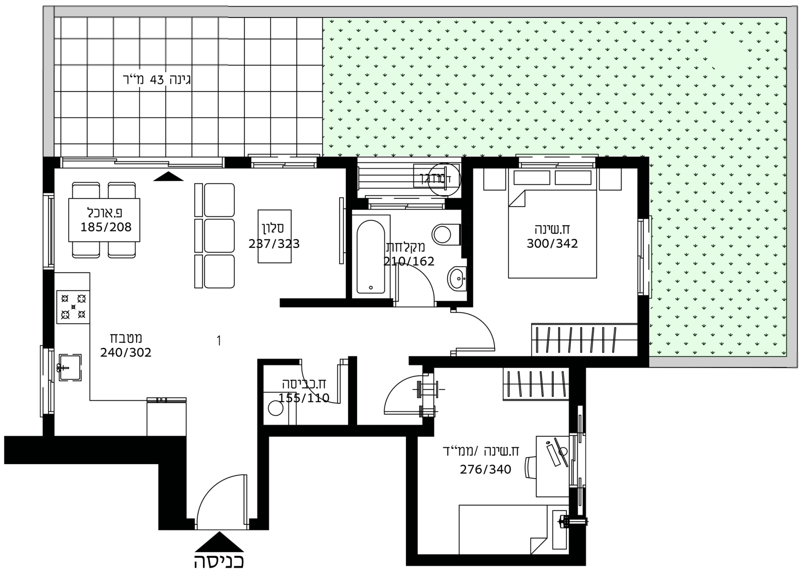 - מטבח הכולל ארונות תחתוניים ועליוניים